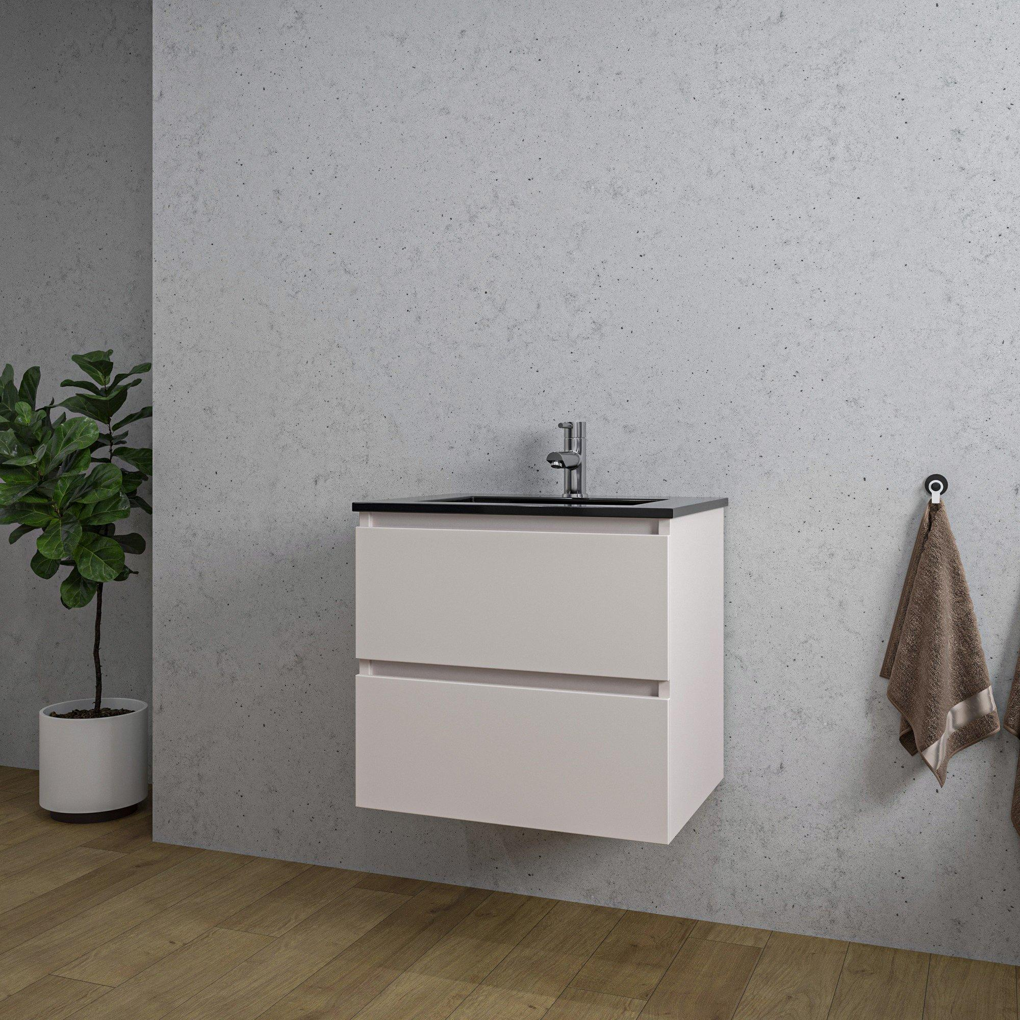 Saniclass Chaci Badkamermeubelset - 60x46x57cm - keramische wastafel zwart - 1 wasbak - 1 kraangat - 2 lades - mat cotton (beige)