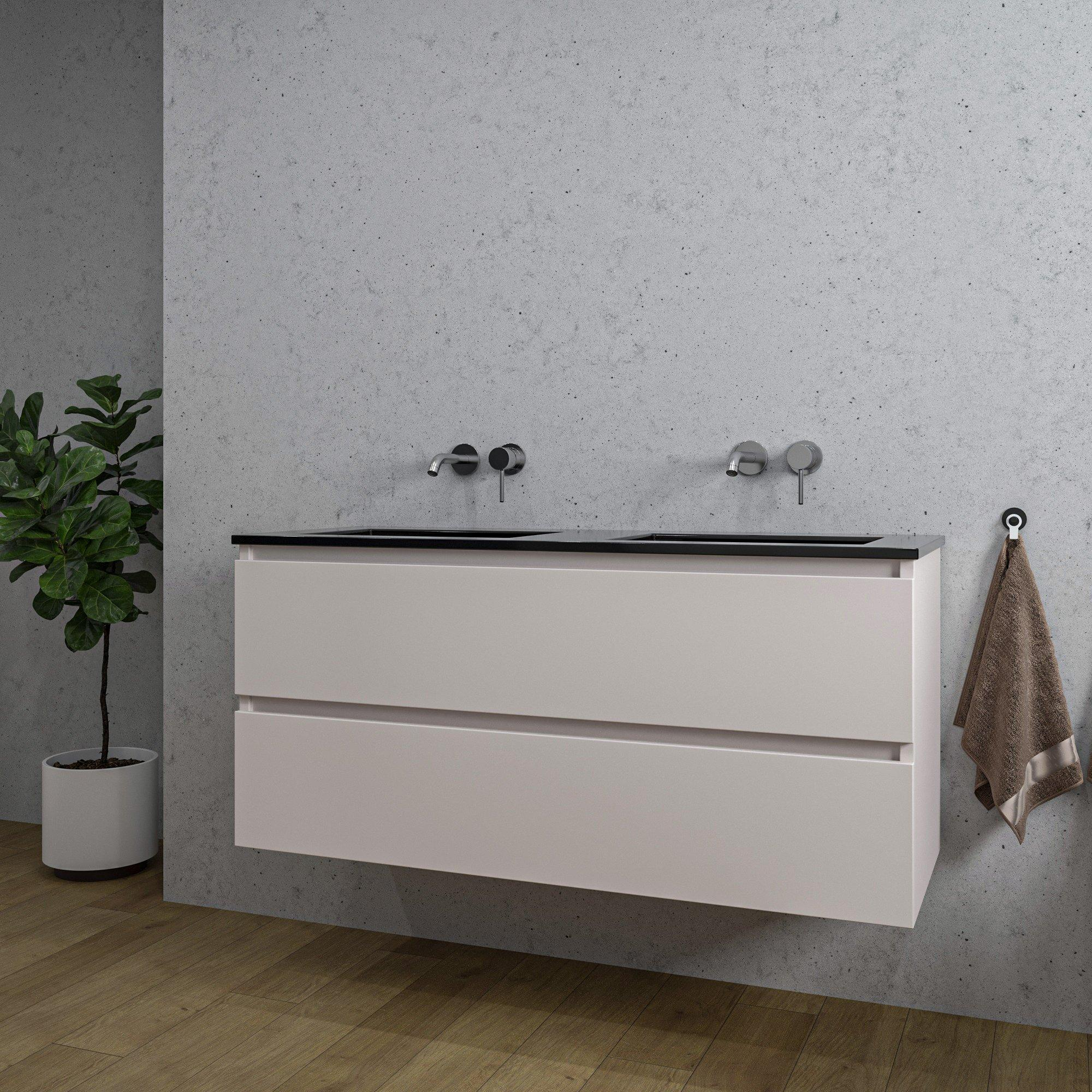 Saniclass Chaci Badkamermeubelset - 120x46x57cm - keramische wastafel zwart - 2 wasbakken - zonder kraangaten - 2 lades - mat cotton (beige)