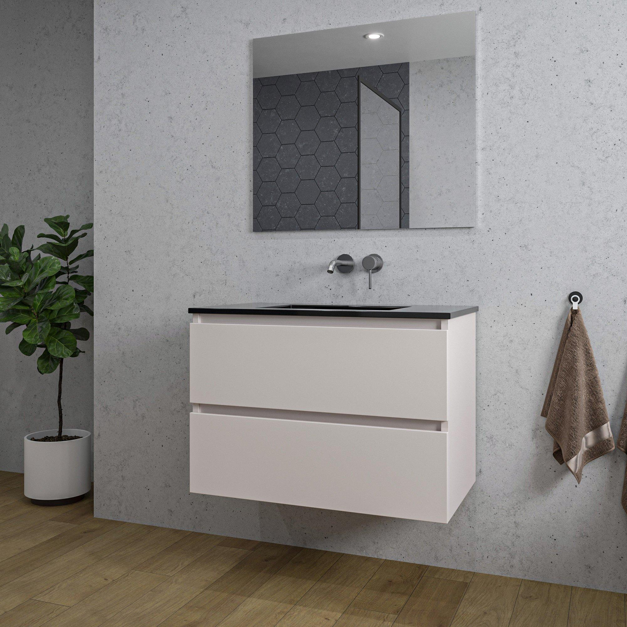 Saniclass Chaci Badkamermeubelset - 80x46x55cm - keramische wastafel zwart - 1 wasbak - zonder kraangat - 2 lades - rechthoekige spiegel - mat cotton (beige)
