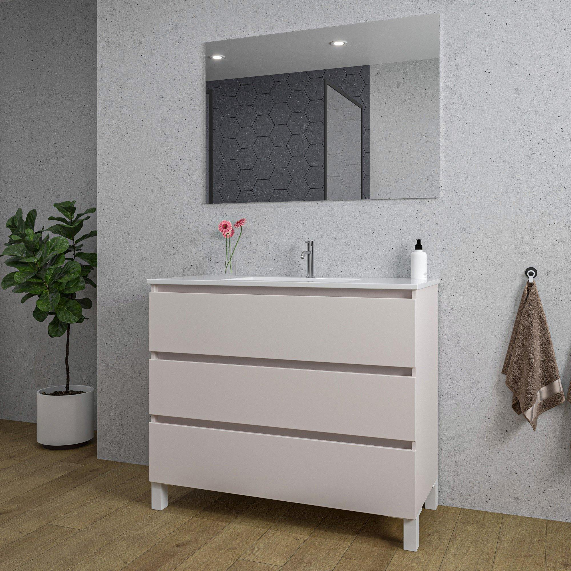 Saniclass Chaci PLUS Badkamermeubelset - 100x86x46cm - keramische wastafel wit - 1 wasbak - 1 kraangat - 3 lades - rechthoekige spiegel - mat cotton (beige)
