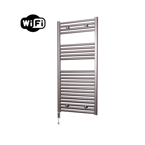 Deze radiator is ontworpen met jouw gemak in gedachten. De thermostaat is slim geplaatst linksonder en is eenvoudig te bedienen, terwijl de wifi-functionaliteit je de vrijheid geeft om de temperatuur op afstand aan te passen via je smartphone. Dit betekent dat je altijd kunt zorgen voor de perfecte warmte, zelfs voordat je de badkamer betreedt. De verticale montage en het compacte formaat van 111,8 bij 45 cm maken het mogelijk om hem in diverse ruimtes te plaatsen, zonder dat hij veel ruimte inneemt. Zo combineer je praktische bruikbaarheid met een hoog comfortniveau.