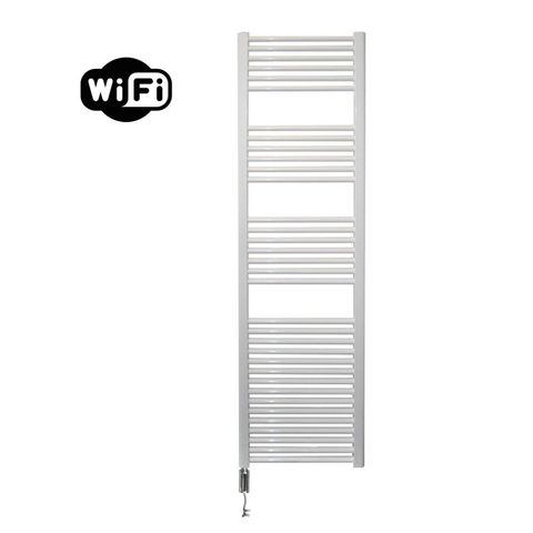 Met een vermogen van 920 watt verwarmt deze radiator jouw badkamer snel en efficiënt. De ingebouwde wifi-thermostaat maakt het mogelijk om de temperatuur eenvoudig op afstand te regelen via je smartphone, zodat je altijd binnenkomt in een warme ruimte. De thermostaat is handig geplaatst aan de linkerkant en uitgevoerd in chroom, wat niet alleen praktisch is maar ook een luxe uitstraling geeft. Dankzij de verticale montage en de slimme bediening geniet je van optimale warmte zonder gedoe.