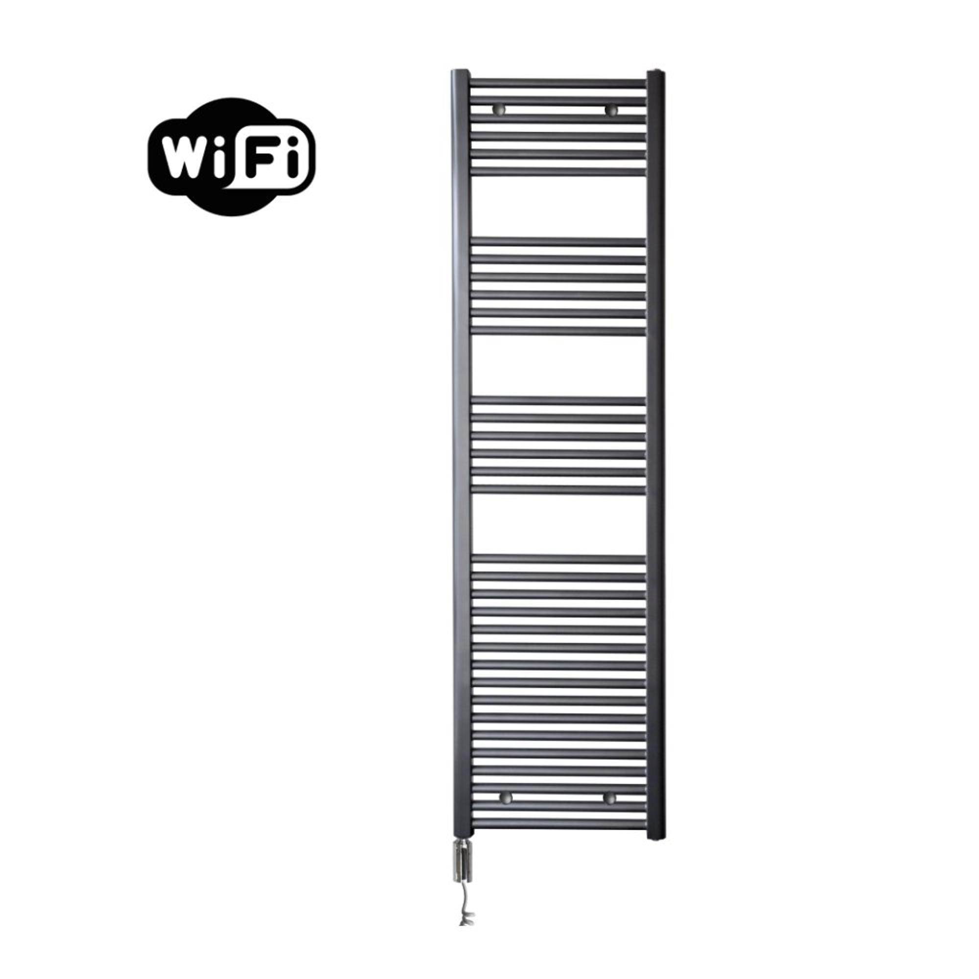 Sanicare HVW Elektrische Radiator - 172x45cm - 920W - wifi - thermostaat - chroom - linksonder - gunmetal (antraciet)