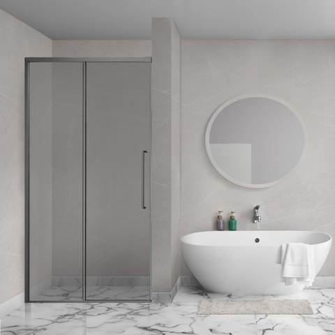 Ervaar de ultieme luxe met deze Aqua Vista Lokla Linea nisdeur. Het champagne glas straalt elegantie uit en creëert een gevoel van weelde in je badkamer. De gunmetal afwerking voegt een vleugje moderniteit toe aan het geheel, waardoor deze nisdeur een ware blikvanger wordt in je badkamer.