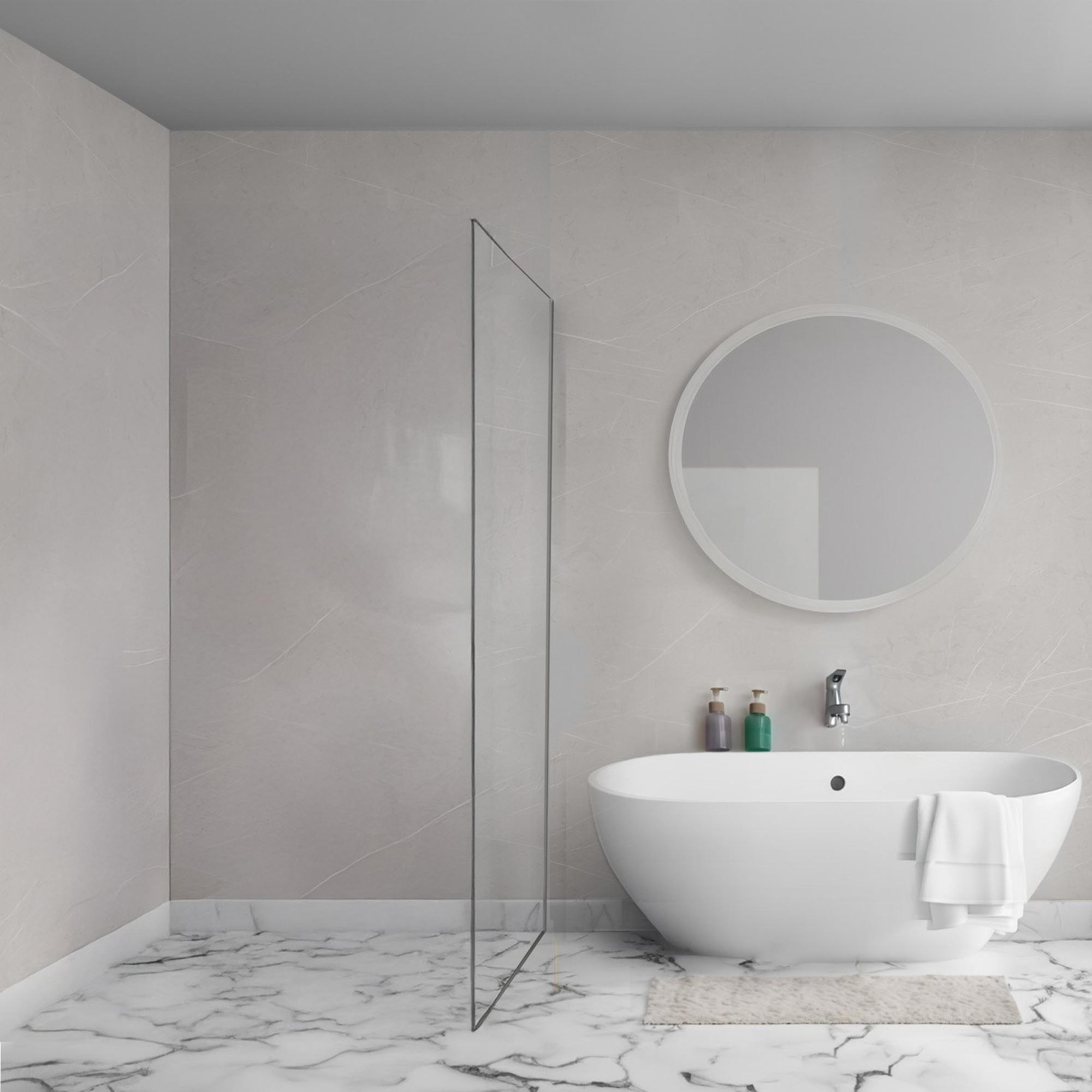 Voeg een vleugje stijl toe aan je badkamer met deze zijwand. Het strakke ontwerp en de minimalistische uitstraling zorgen voor een eigentijdse look die indruk zal maken op gasten. De gunmetal afwerking geeft een trendy en verfijnde uitstraling aan de ruimte, waardoor je badkamer een ware blikvanger wordt.