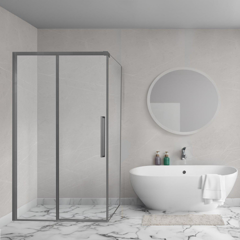 Ervaar de ultieme luxe in jouw badkamer met deze zijwand. Het gunmetal frame straalt klasse uit en vormt een perfecte aanvulling op elke moderne badkamer. Geniet van een spa-achtige ervaring in je eigen huis met deze elegante toevoeging. De 80x200cm afmetingen bieden voldoende ruimte en privacy voor een ontspannende douche-ervaring.