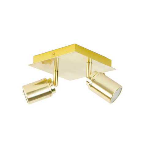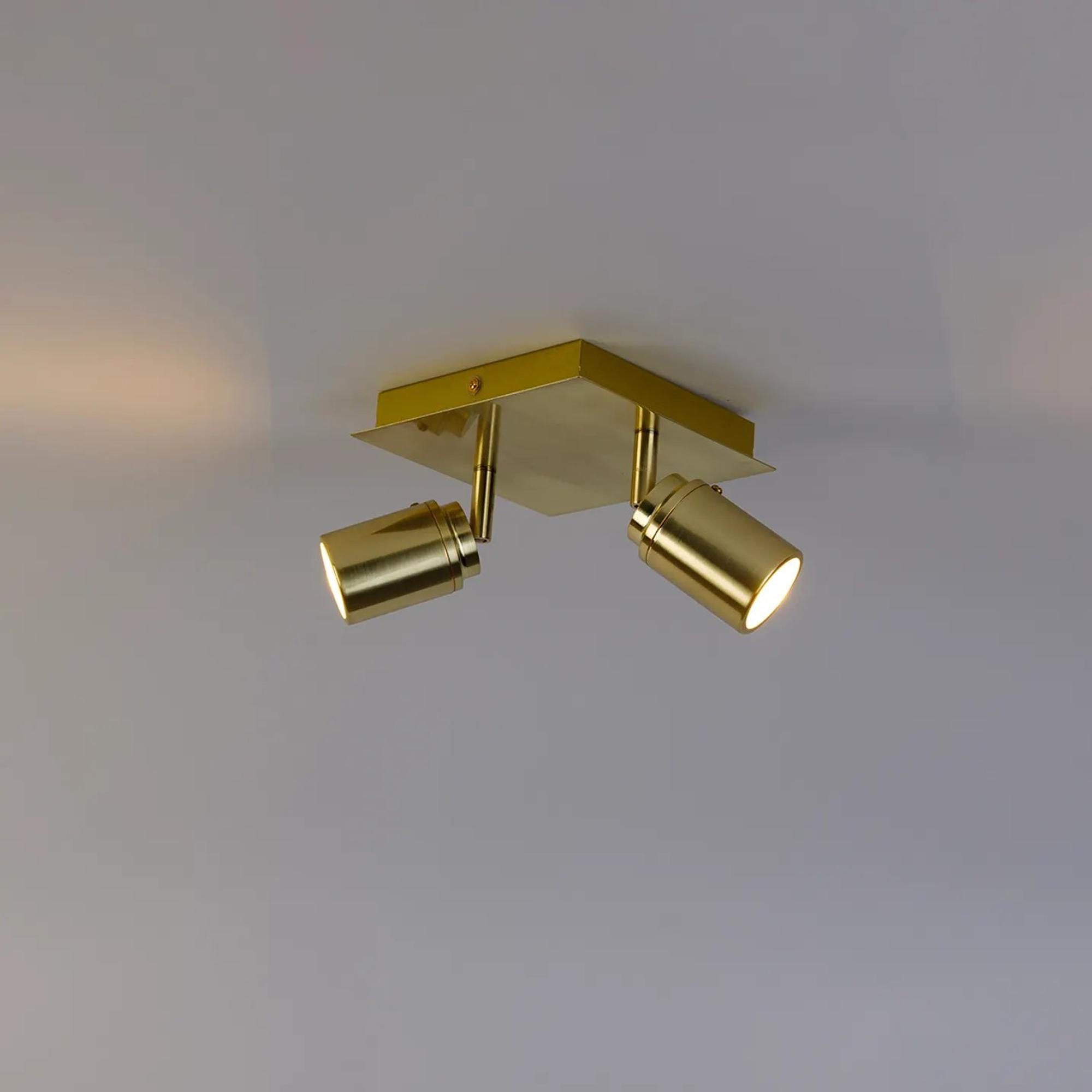 QAZQA Ducha badkamer plafondlamp - 17x17cm - 2 spots - IP44 - vierkant - messing (goud)