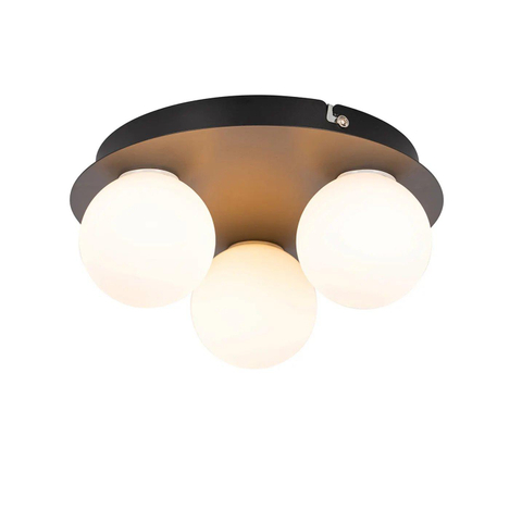 QAZQA Cederic badkamer plafondlamp - 23x23x10.3cm - 3 lichts - rond - mat zwart