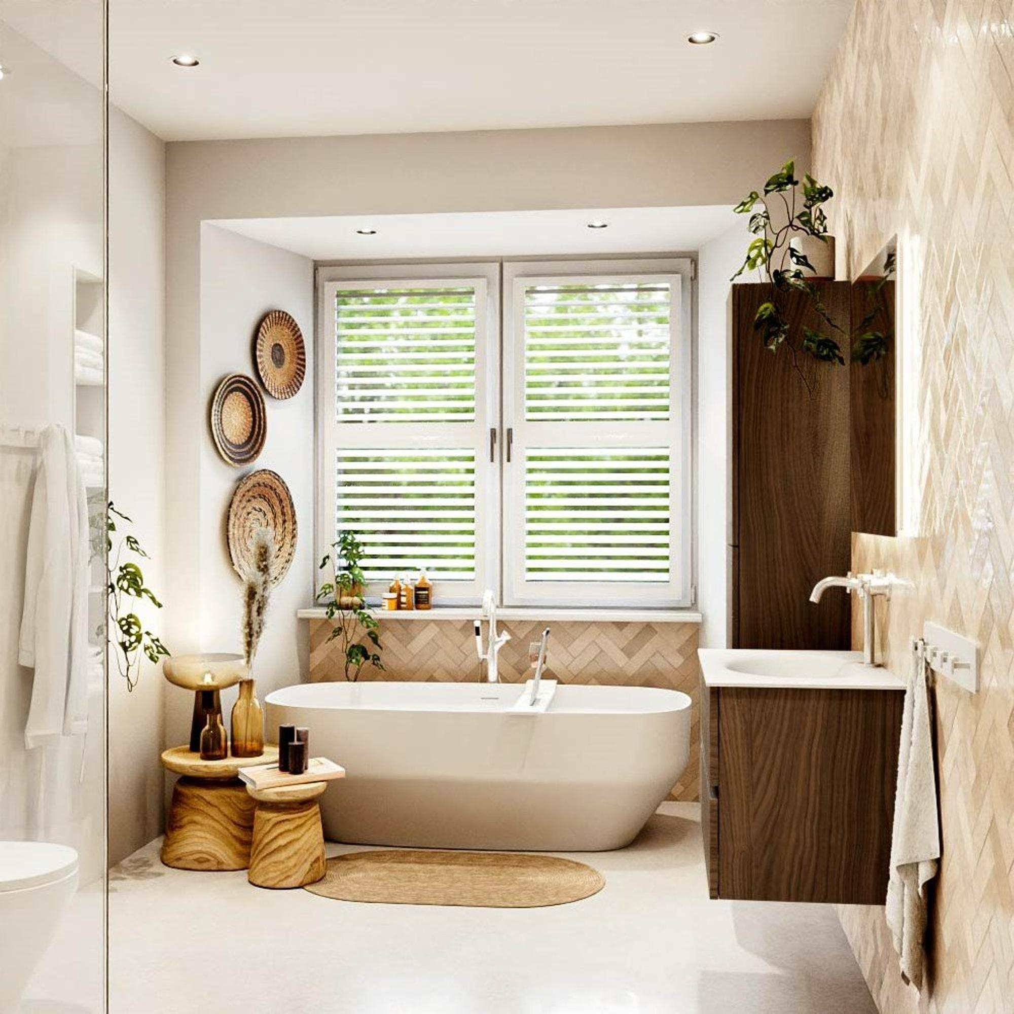 - Mocha-kleurige onderkast die warmte en stijl toevoegt aan je badkamer