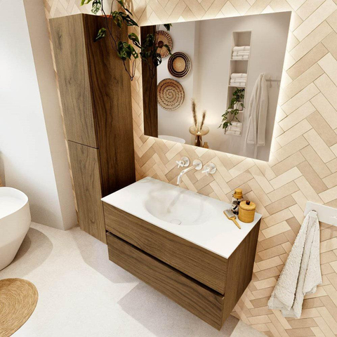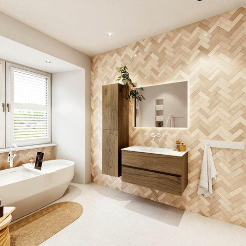 Met dit prachtige meubel geef je jouw badkamer direct een stijlvolle en praktische upgrade. De combinatie van een strak vormgegeven onderkast met een hoogwaardige wastafel zorgt voor een harmonieus geheel waar je elke dag plezier van hebt. Dankzij de twee ruime lades berg je al je badkamerbenodigdheden netjes en overzichtelijk op, waardoor je altijd een opgeruimde ruimte hebt. De warme Chai-kleur geeft een natuurlijke en uitnodigende sfeer, terwijl het moderne design moeiteloos aansluit bij diverse interieurstijlen. Door het ontbreken van een kraangat in de wastafel heb je bovendien de vrijheid om zelf de kraan te kiezen die het beste bij jouw wensen past. Zo creëer je een badkamer die niet alleen mooi oogt, maar ook perfect aansluit op jouw persoonlijke stijl en gebruiksgemak.