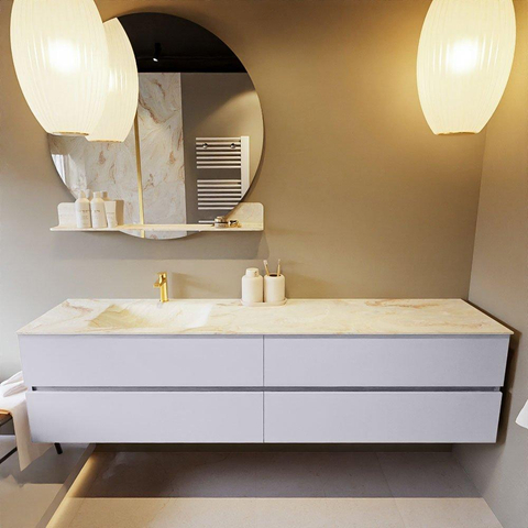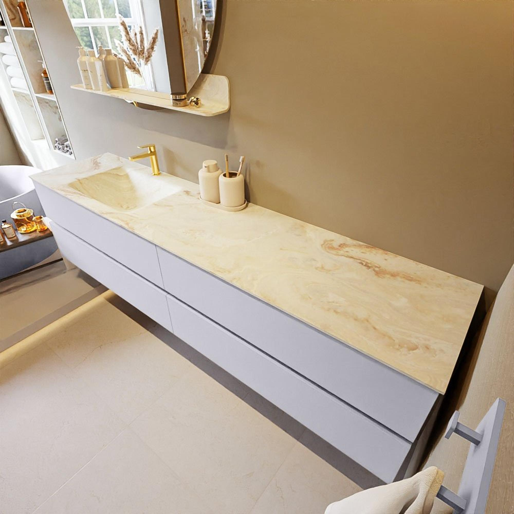 Mondiaz VICA-DLUX Badkamermeubelset - 200cm - cale - 4 lades - Inbouw wastafel CLOUD - links - 1 kraangat - kleur Frappe - XL versie 60cm hoog