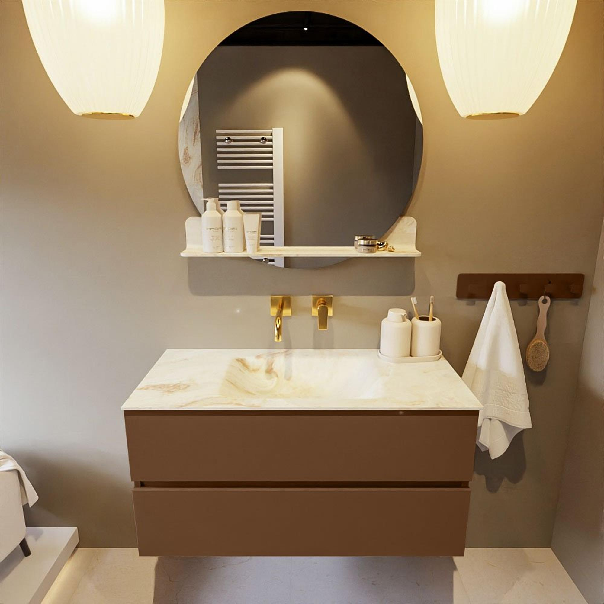 Mondiaz VICA-DLUX Badkamermeubelset - 100cm - rust - 2 lades - Inbouw wastafel CLOUD - midden - zonder kraangat - kleur Frappe - XL versie 60cm hoog