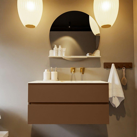 Mondiaz VICA-DLUX Badkamermeubelset - 100cm - rust - 2 lades - Inbouw wastafel CLOUD - rechts - zonder kraangat - kleur Frappe - XL versie 60cm hoog