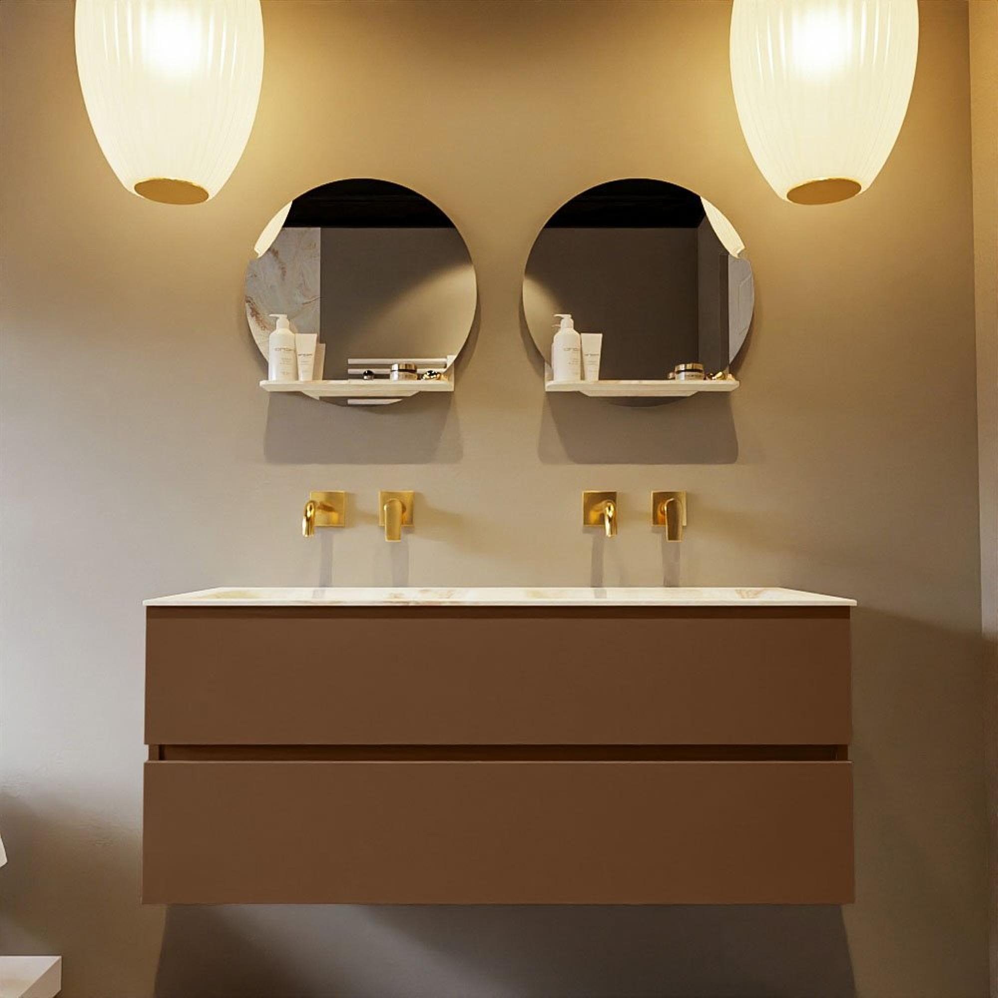 Mondiaz VICA-DLUX Badkamermeubelset - 120cm - rust - 2 lades - Inbouw wastafel CLOUD - dubbel zonder kraangat - kleur Frappe - XL versie 60cm hoog