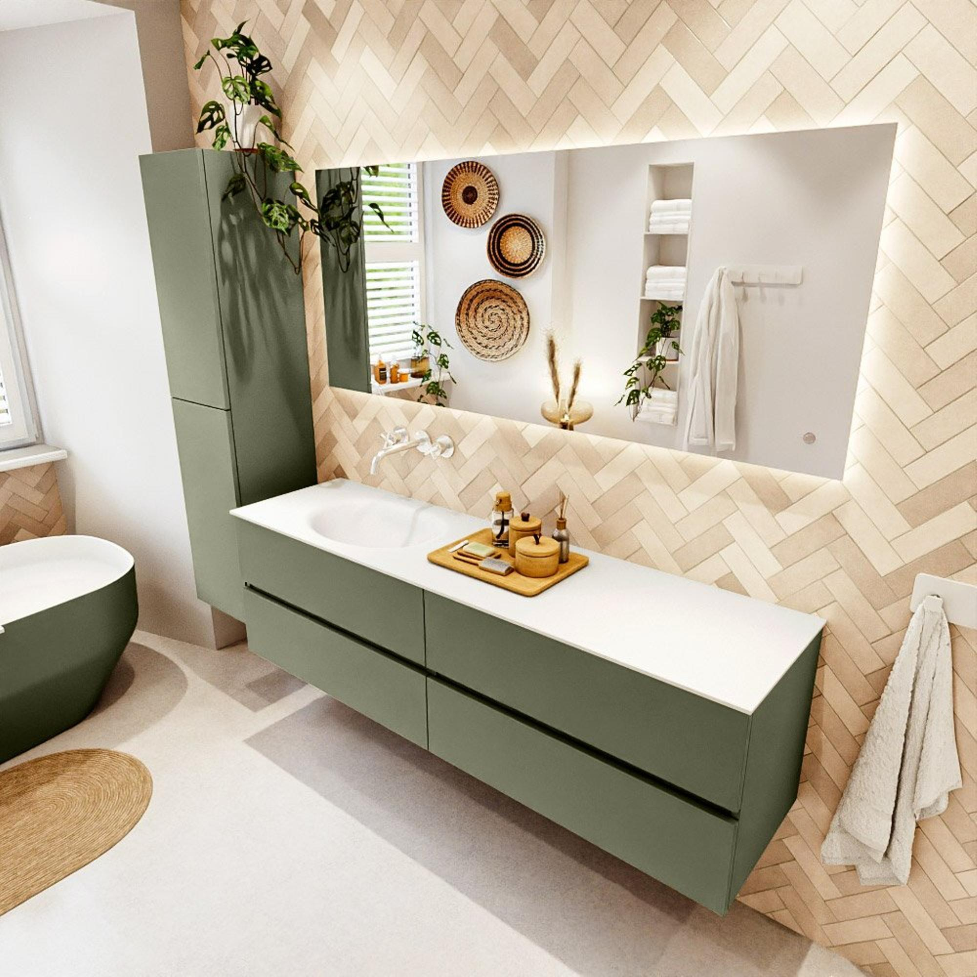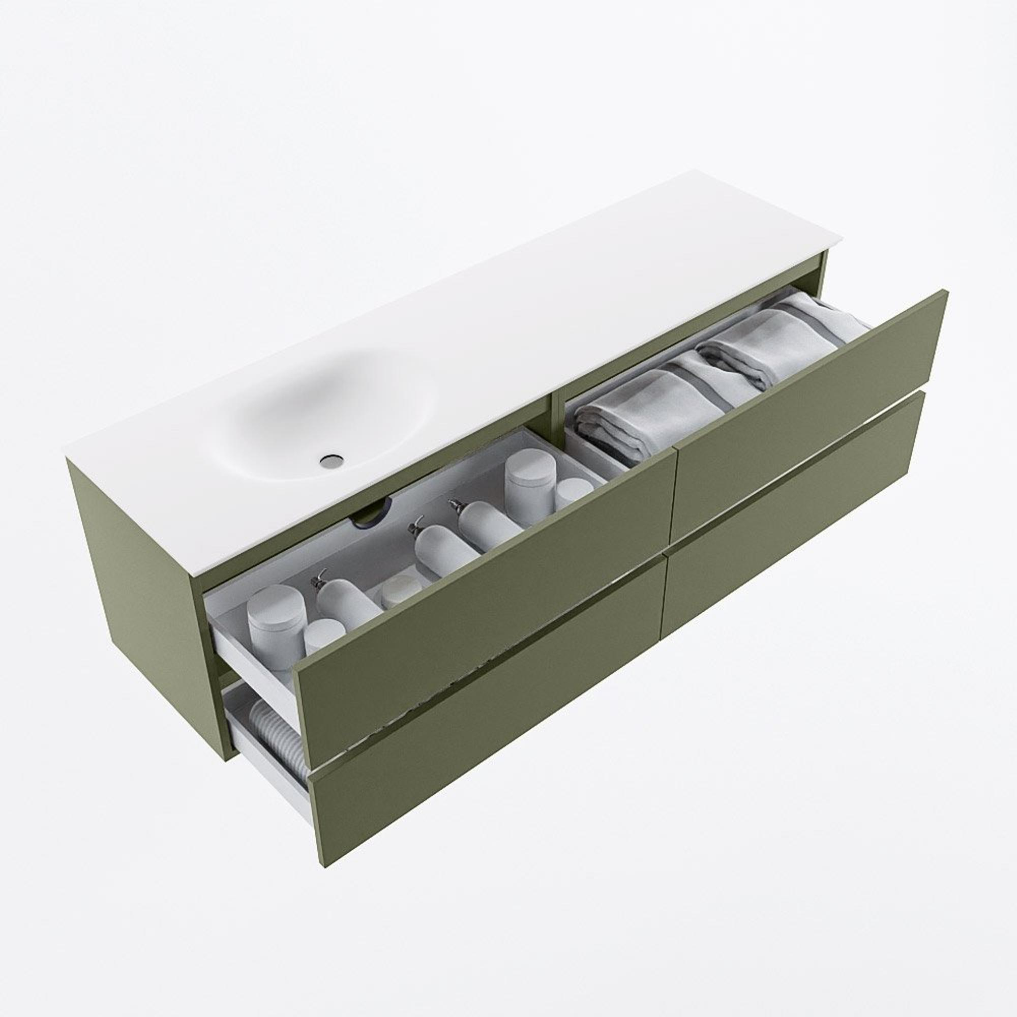 Mondiaz VICA Badkamermeubelset - 170cm - army - 4 lades - Wastafel MOON - links - zonder kraangat - kleur talc - XL versie 60cm hoog