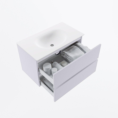 Mondiaz VICA Badkamermeubelset - 80cm - cale - 2 lades - Wastafel MOON - midden - zonder kraangat - kleur talc - XL versie 60cm hoog
