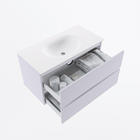 Mondiaz VICA Badkamermeubelset - 90cm - cale - 2 lades - Wastafel MOON - midden - 1 kraangat - kleur talc - XL versie 60cm hoog