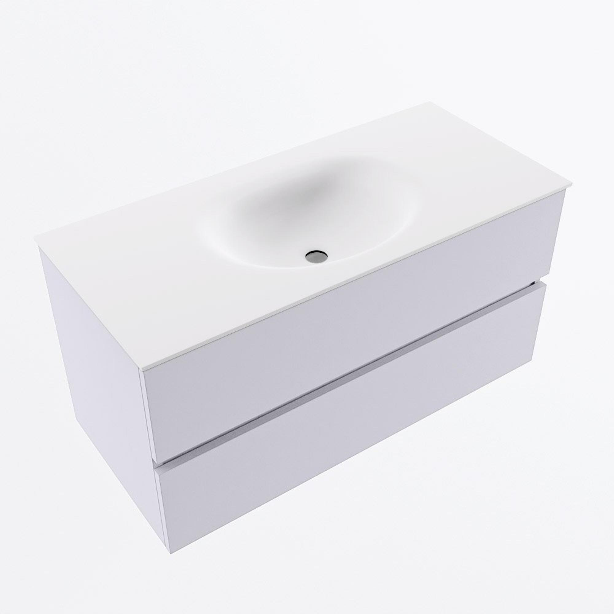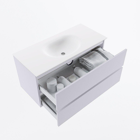 Mondiaz VICA Badkamermeubelset - 100cm - cale - 2 lades - Wastafel MOON - midden - 1 kraangat - kleur talc - XL versie 60cm hoog