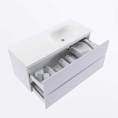 Mondiaz VICA Badkamermeubelset - 110cm - cale - 2 lades - Wastafel MOON - rechts - zonder kraangat - kleur talc - XL versie 60cm hoog