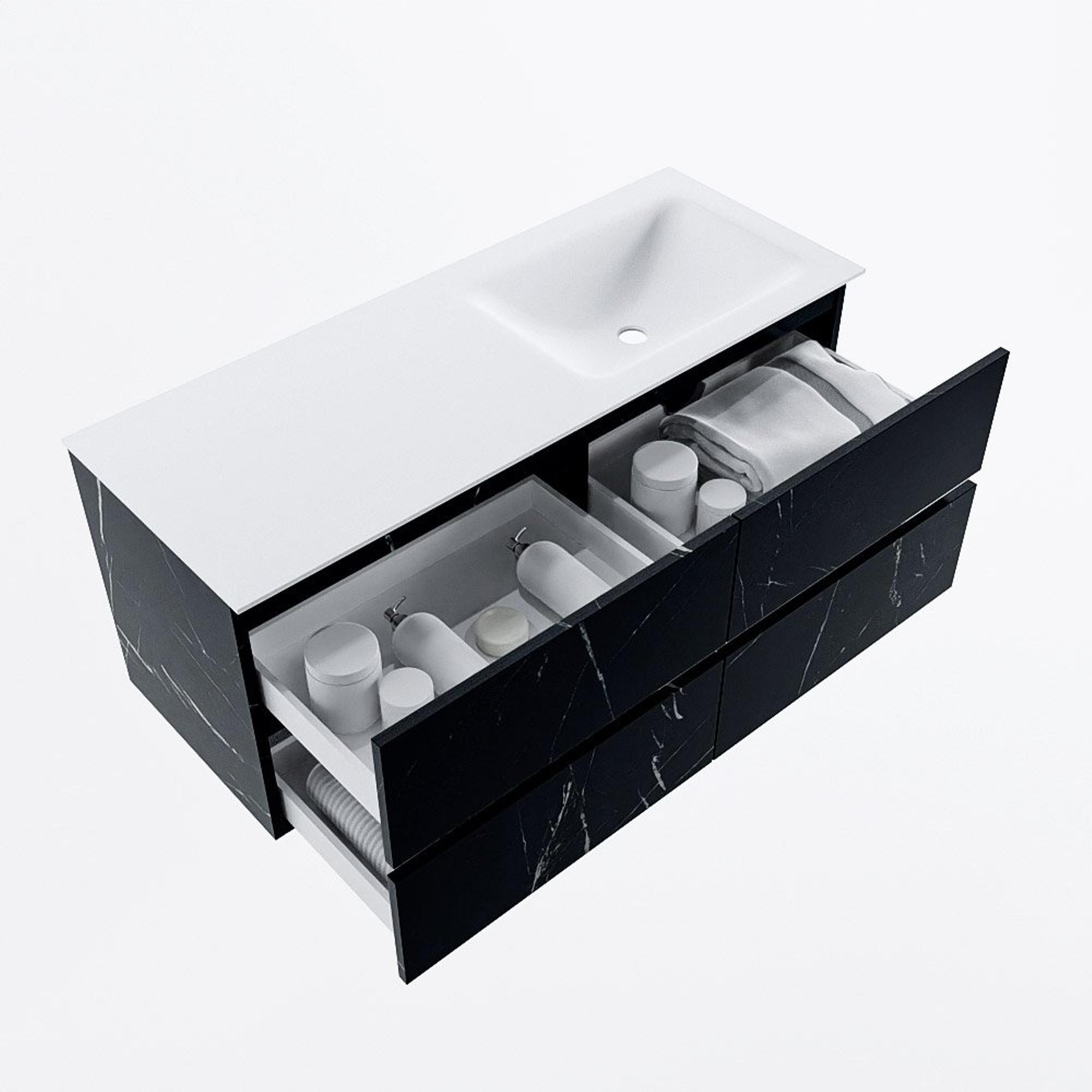Mondiaz VICA Badkamermeubelset - 120cm - Marquina 4 lades - Wastafel CLOUD - rechts - zonder kraangat - kleur talc - XL versie 60cm hoog