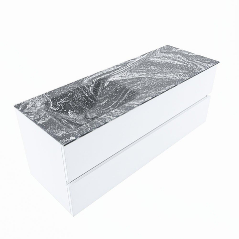 Mondiaz VICA-DLUX Badkamermeubelset - 130cm - talc - 2 lades - Inbouw wastafel CLOUD - links - zonder kraangat - kleur Lava - XL versie 60cm hoog
