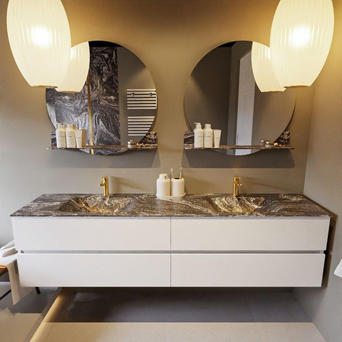 Mondiaz VICA-DLUX Badkamermeubelset - 200cm - talc - 4 lades - Inbouw wastafel CLOUD - dubbel 2 kraangaten - kleur Lava - XL versie 60cm hoog