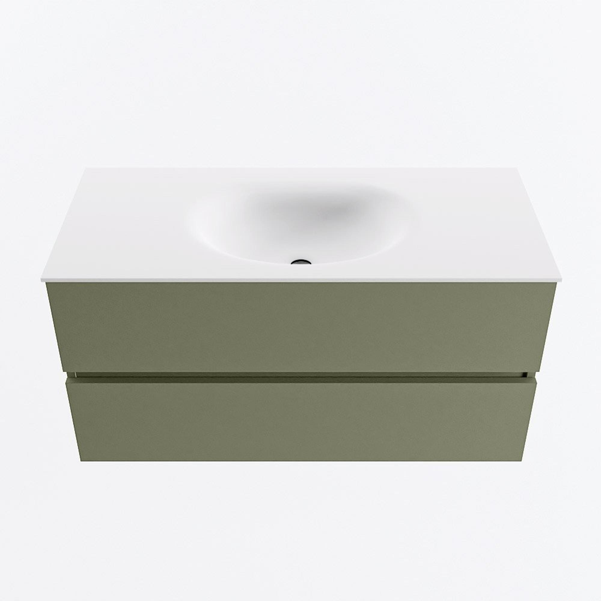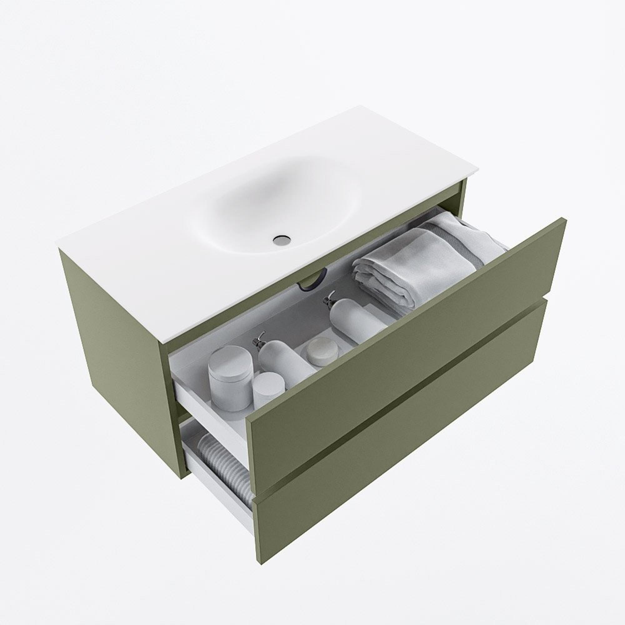 Mondiaz VICA Badkamermeubelset - 100cm - army - 2 lades - Wastafel MOON - midden - zonder kraangat - kleur talc - XL versie 60cm hoog