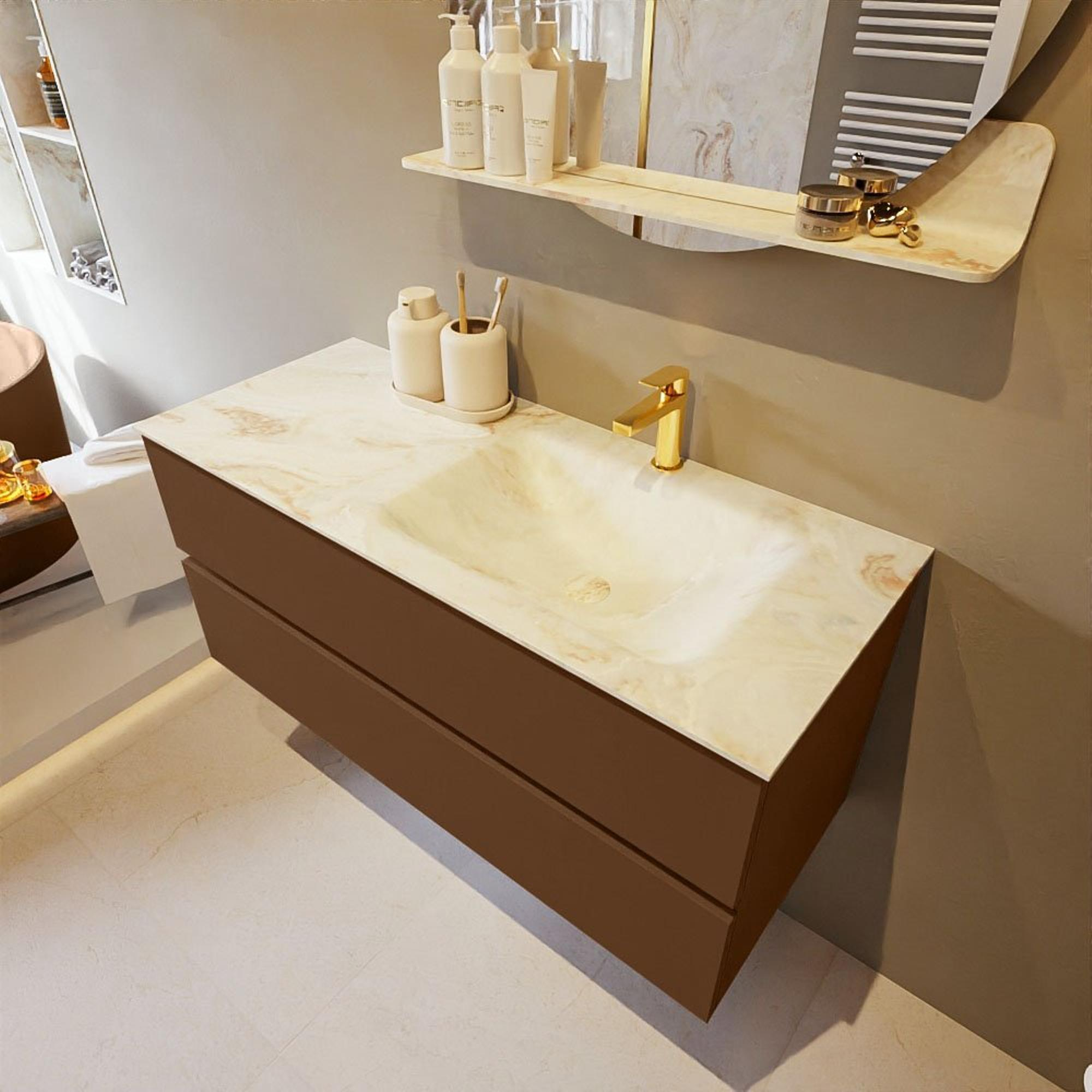 Mondiaz VICA-DLUX Badkamermeubelset - 110cm - rust - 2 lades - Inbouw wastafel CLOUD - rechts - 1 kraangat - kleur Frappe - XL versie 60cm hoog