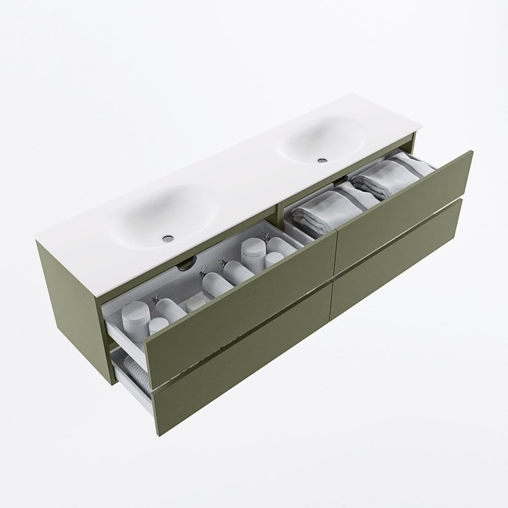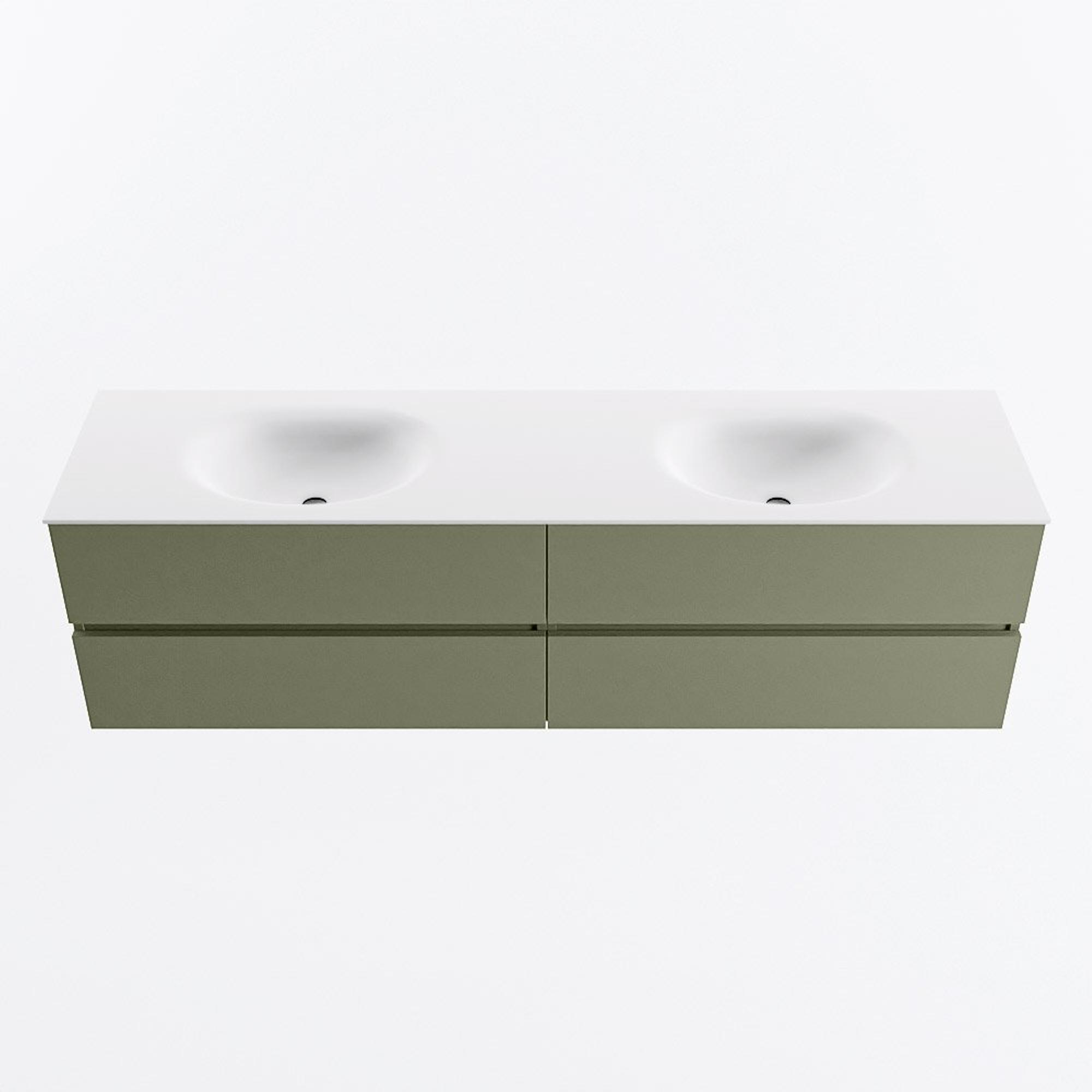 Mondiaz VICA Badkamermeubelset - 180cm - army - 4 lades - Wastafel MOON - dubbel zonder kraangat - kleur talc - XL versie 60cm hoog