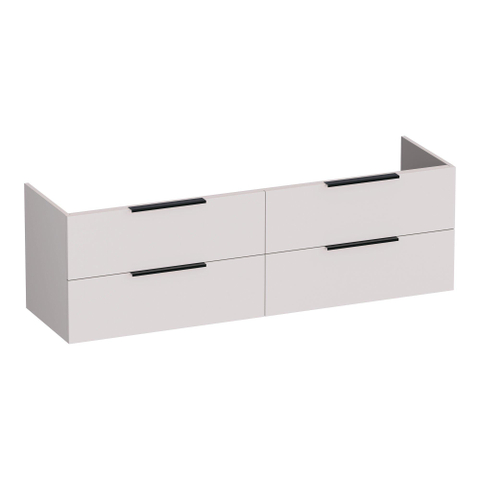 Met deze ruime wastafelonderkast creëer je in één keer rust, bergruimte en een stijlvolle basis voor je badkamer. Dankzij de royale breedte is dit meubel ideaal onder een dubbele wastafel of twee waskommen, bijvoorbeeld in een gezinsbadkamer of master bathroom waar je graag tegelijk de dag start. De matte zandtint sluit prachtig aan bij natuurlijke badkamers met hout- en aardetinten, maar geeft ook in een strakke moderne ruimte een warme, zachte uitstraling. Doordat het meubel zwevend aan de wand wordt gemonteerd, oogt de badkamer ruimtelijker en blijft de vloer lekker makkelijk schoon te houden. De vier royale lades bieden volop plek voor handdoeken, cosmetica en dagelijkse verzorgingsproducten, zodat je wastafelblad netjes opgeruimd blijft en je badkamer altijd verzorgd aanvoelt.