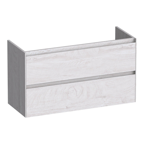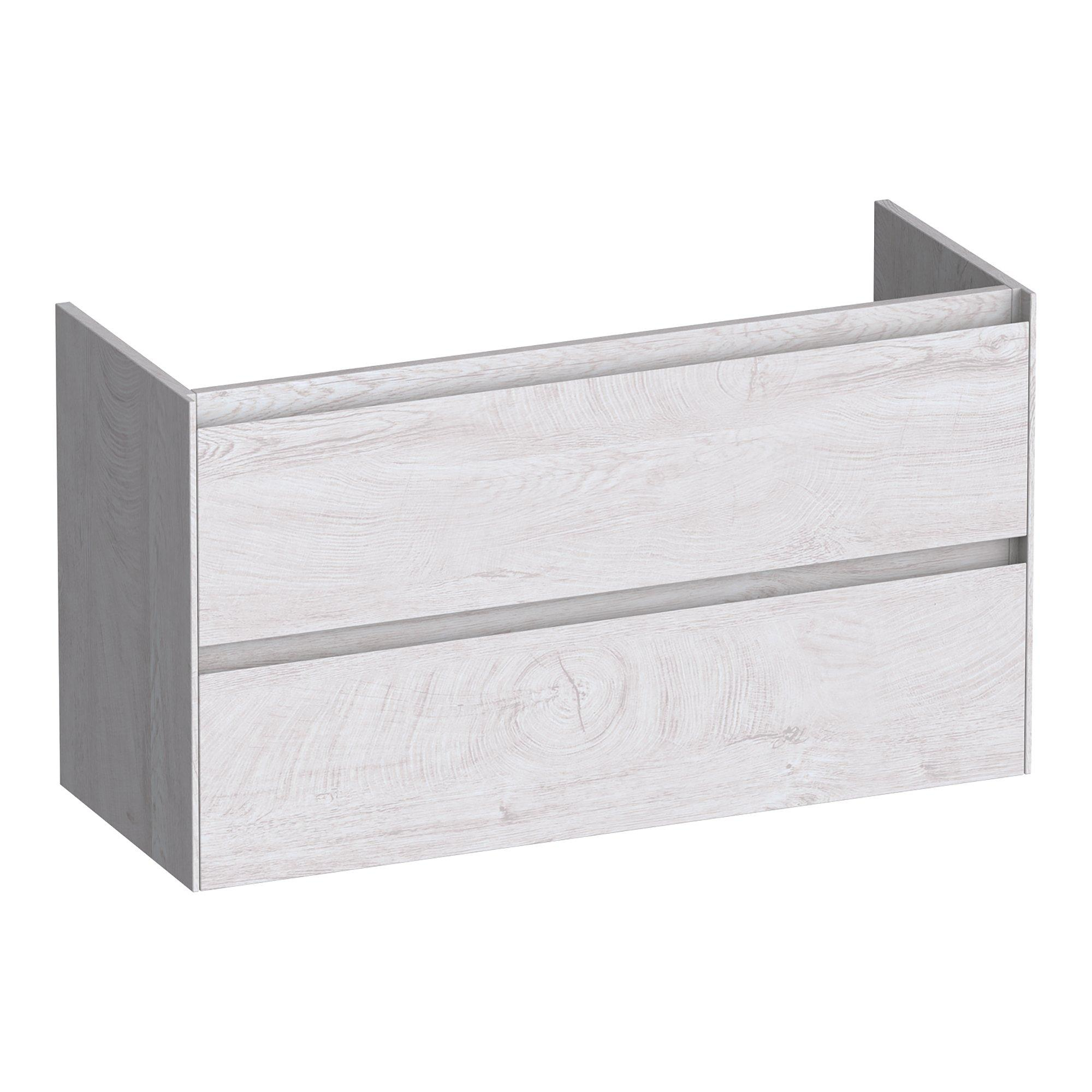 Door de ondiepe uitvoering van circa 38-39 cm diepte profiteer je van een slank meubel dat nauwelijks in de loopruimte steekt, maar je alsnog volop opbergplek biedt. De breedte van 99 cm en de twee ruime lades zorgen ervoor dat je jouw dagelijkse badkamerspullen overzichtelijk kunt wegbergen, van verzorgingsproducten tot handdoeken. Dat maakt dit meubel ideaal voor smalle badkamers, een nisopstelling of situaties waarin de deur dicht langs het meubel draait. De wandmontage houdt de vloer vrij, waardoor de badkamer groter oogt en je eenvoudig onder het meubel kunt dweilen. Zo combineer je een luchtige, open uitstraling met heel praktische bergruimte.