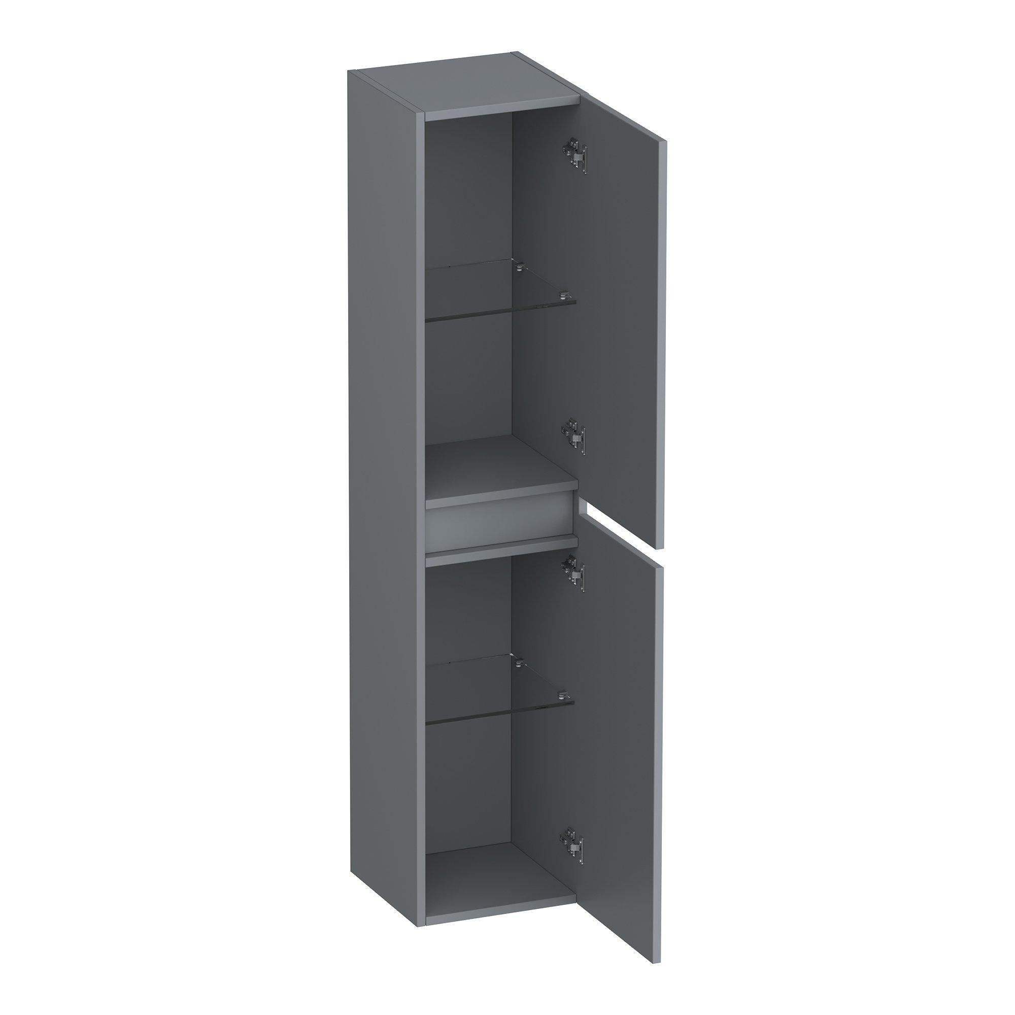 De BRAUER Joy Wavy hoge kast 160 is niet alleen stijlvol, maar ook praktisch in gebruik. Dankzij zijn slanke ontwerp neemt hij minimale vloerruimte in beslag, wat ideaal is voor kleinere badkamers of als je gewoon wat extra opbergruimte nodig hebt. De matte grijze afwerking geeft de kast een eigentijdse uitstraling en maakt hem gemakkelijk te combineren met andere badkamermeubels en accessoires.