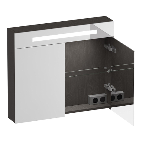 BRAUER Promise Deluxe spiegelkast - 80x70x15cm - met verlichting - 2 dubbelzijdige spiegeldeuren - Timber Anthracite