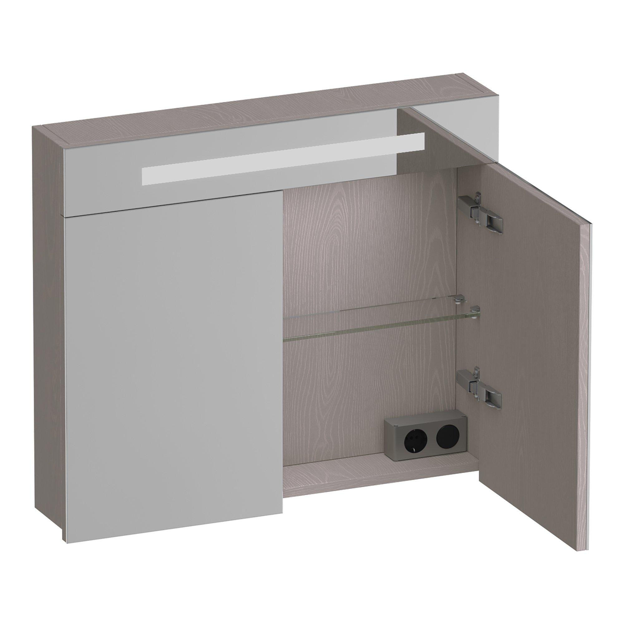 BRAUER Promise spiegelkast - 80x70x15cm - met verlichting 2 spiegeldeuren Timber Greige
