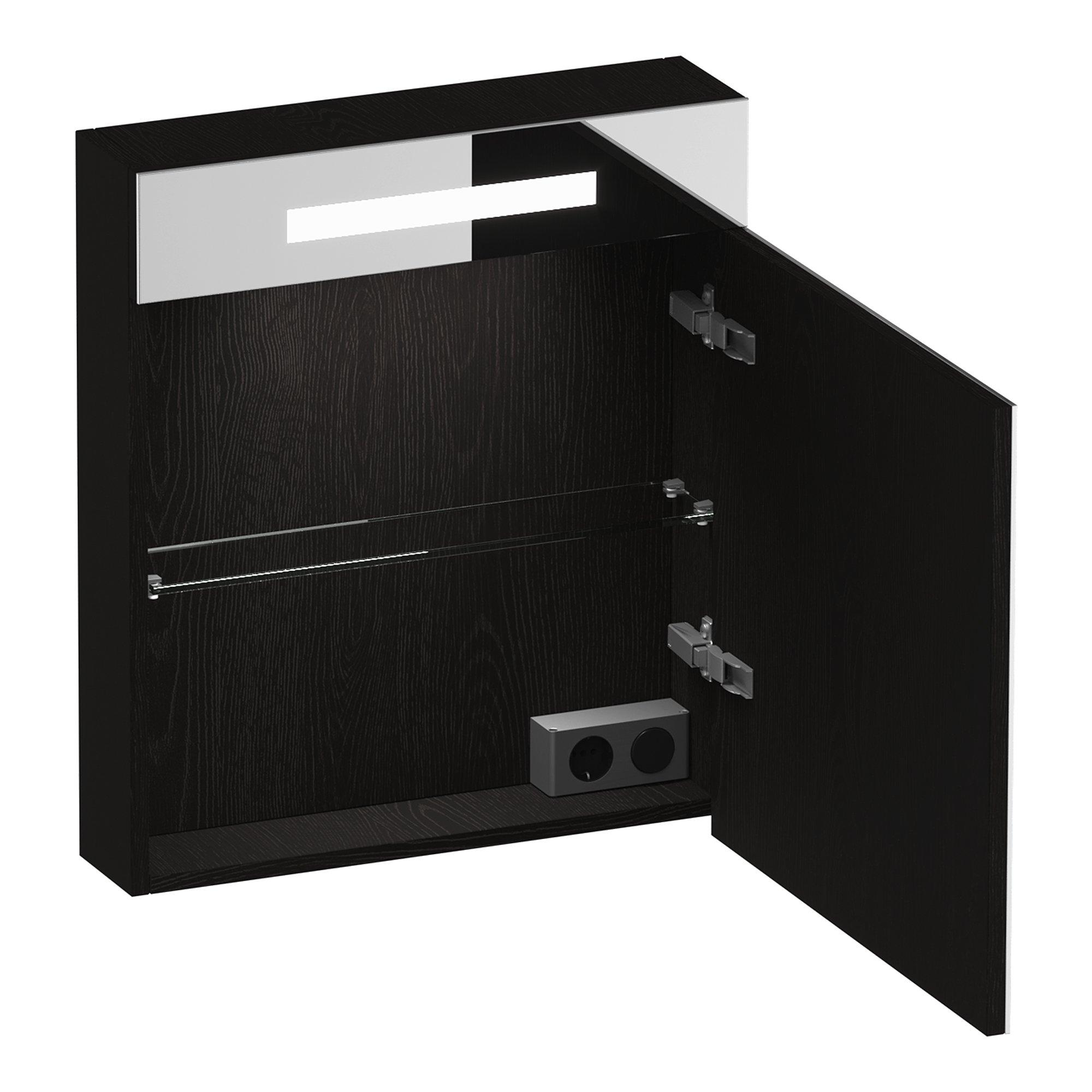 BRAUER Promise spiegelkast - 60x70x15cm -- met verlichting 1 rechtsdraaiende spiegeldeur Timber Black