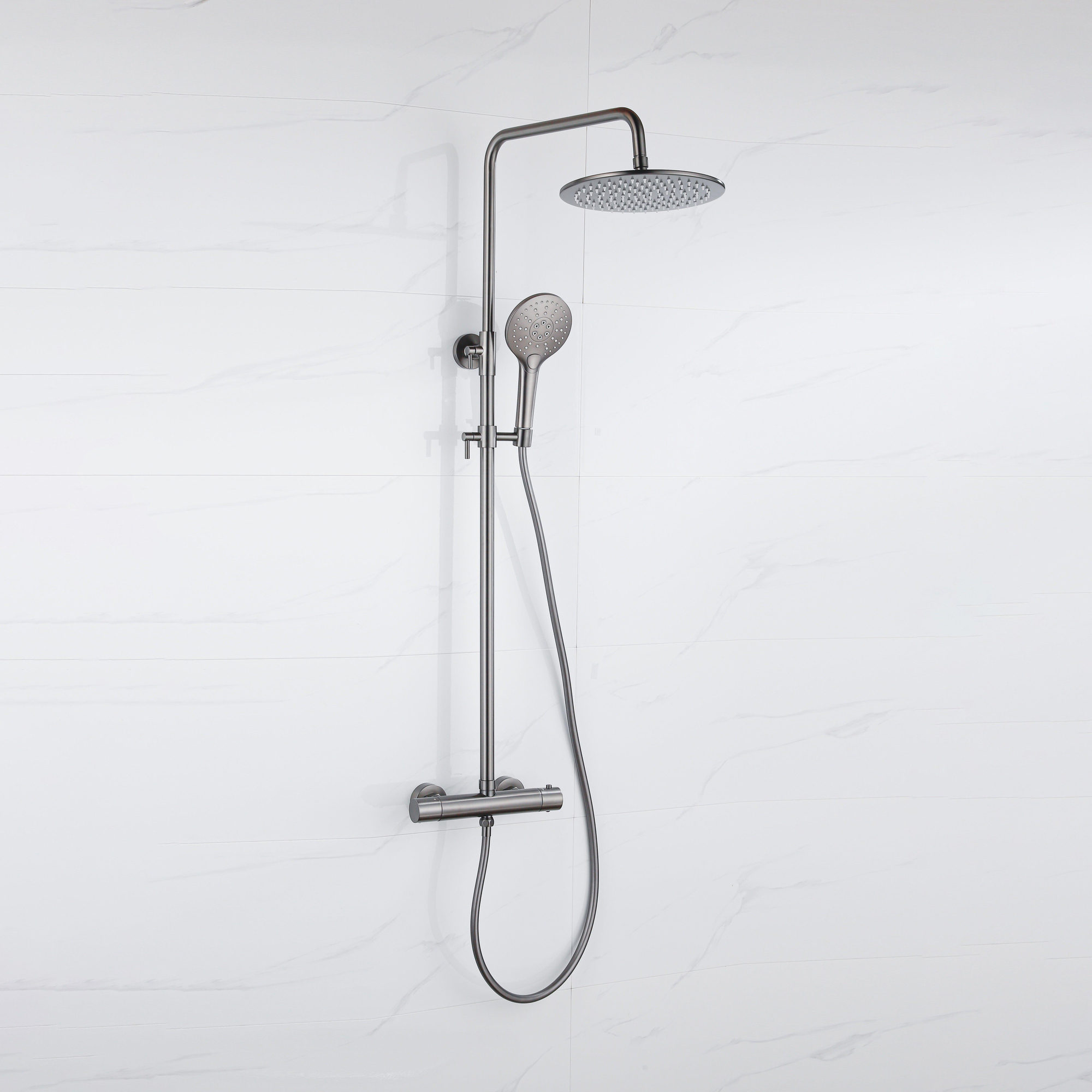 Naast het esthetische aspect is deze regendoucheset ook zeer functioneel. De thermostatische regeling zorgt voor een constante watertemperatuur en voorkomt plotselinge schommelingen. De 25cm hoofddouche zorgt voor een gelijkmatige waterverdeling en een ontspannende douche-ervaring. De gladde slang en ronde handdouche bieden extra flexibiliteit en comfort tijdens het douchen.