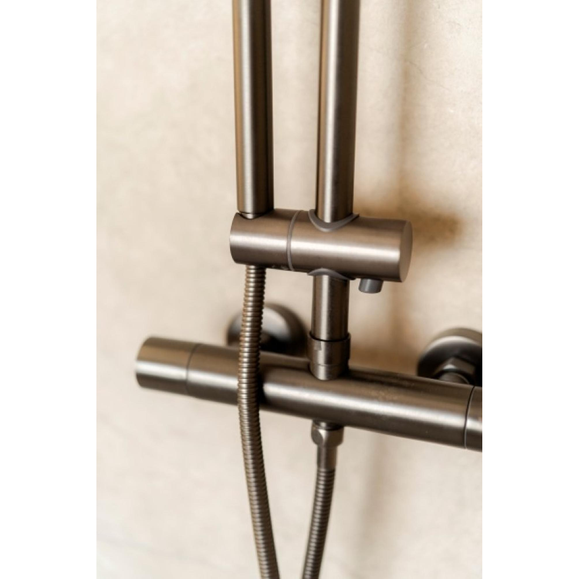 Fortifura Calvi Regendoucheset - thermostatisch - 25cm hoofddouche - metalen slang - staaf handdouche - Geborsteld Gunmetal PVD