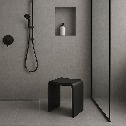 Met zijn mat zwarte afwerking straalt het ZEZA Solid Badkamerkrukje elegantie uit. Het minimalistische ontwerp past perfect bij moderne en klassieke badkamers. De strakke lijnen en subtiele details zorgen voor een tijdloze uitstraling, waardoor dit krukje een ware eyecatcher is in elke badkamer.