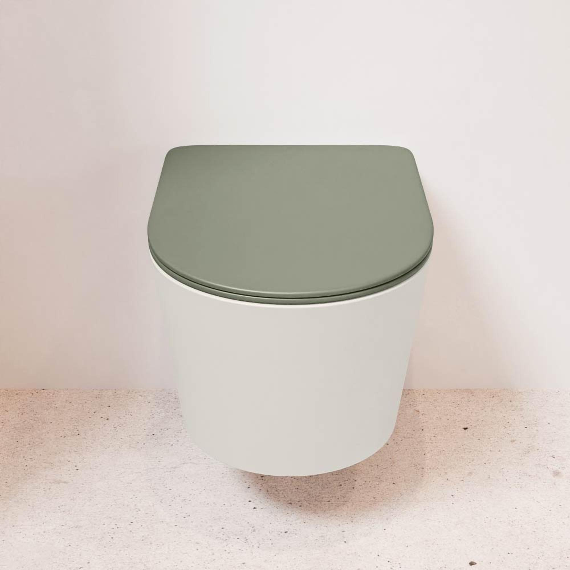 MONDIAZ LAVIE wandclosetpack - 36x53cm - diepspoel - rimless - Linen (offwhite) - softclose - quick-release - toiletzitting - Army (groen)