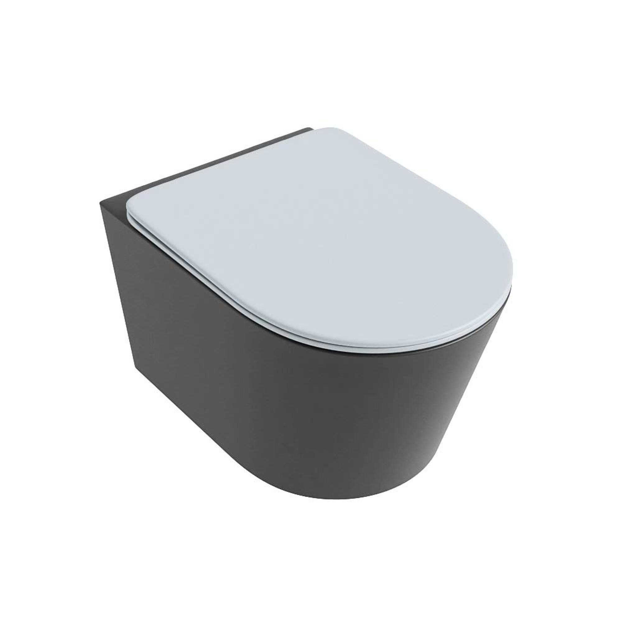 MONDIAZ LAVIE wandclosetpack - 36x53cm - diepspoel - rimless - Dark grey (grijs) - softclose - quick-release - toiletzitting - clay (blauw)