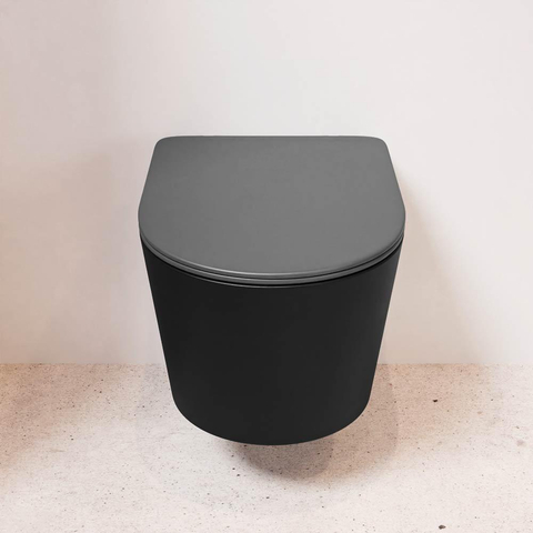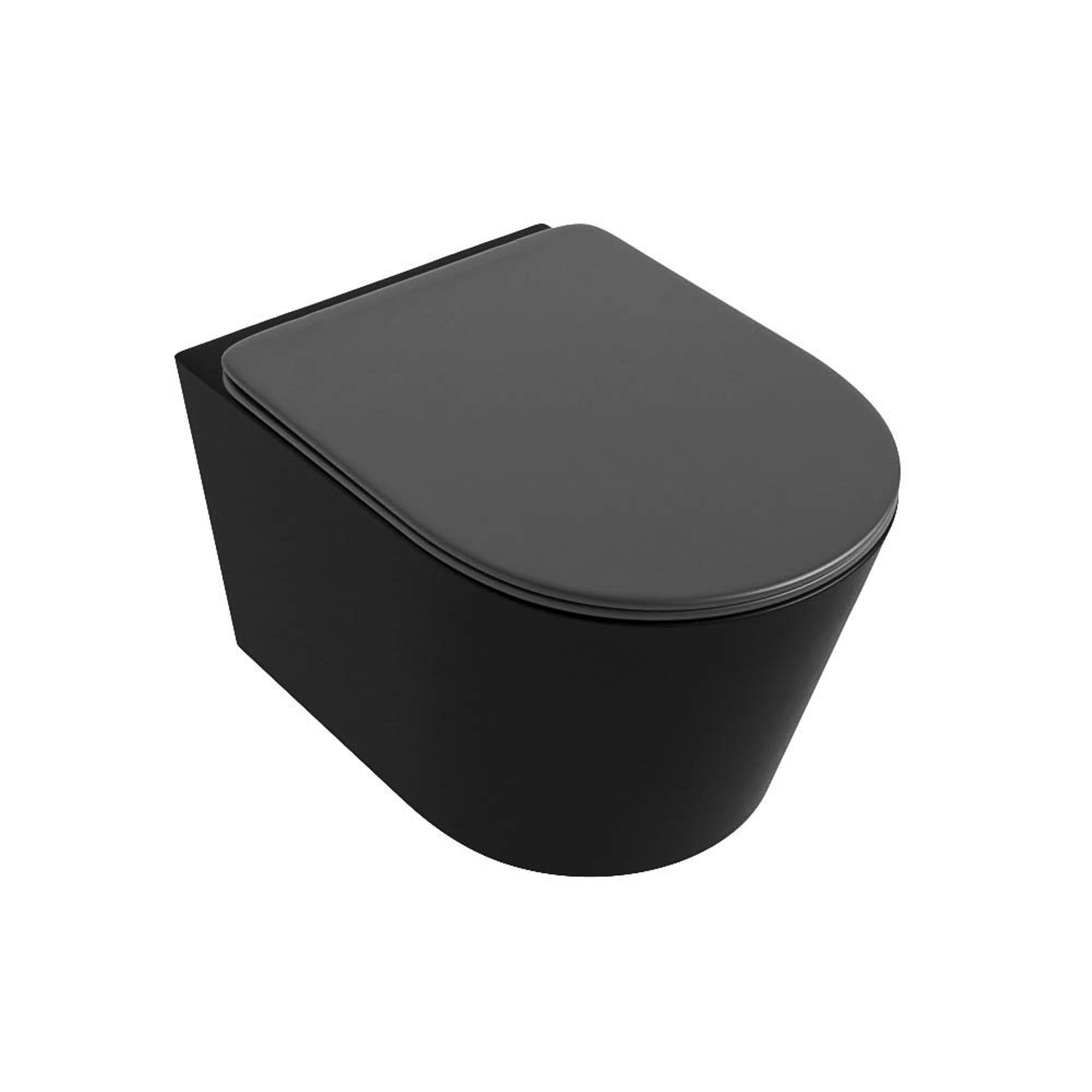 MONDIAZ LAVIE wandclosetpack - 36x53cm - diepspoel - rimless - Urban (zwart) - softclose - quick-release - toiletzitting - Dark grey (grijs)