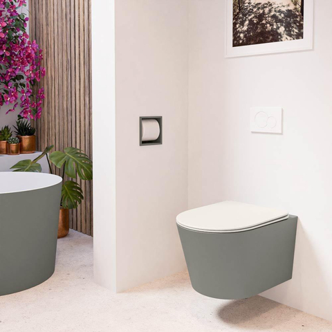 Ook de afdekkapjes, zijn perfect op kleur afgestemd met de toiletpot. Deze uniforme kleuring zorgt voor een esthetisch samenhangend geheel, ideaal voor moderne badkamerontwerpen.