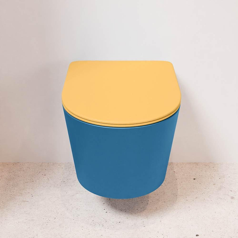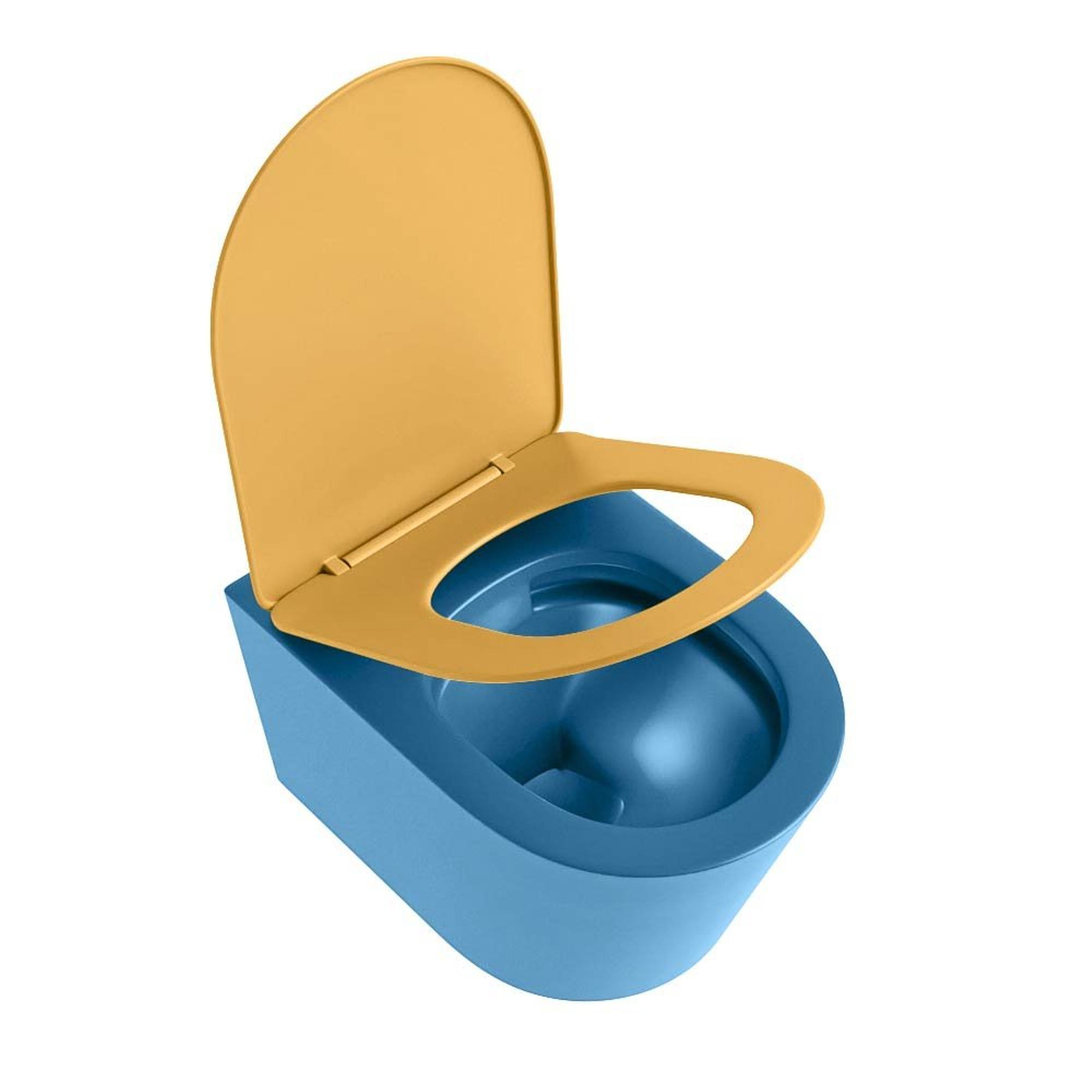 MONDIAZ LAVIE wandclosetpack - 36x53cm - diepspoel - rimless - Jeans (blauw) - softclose - quick-release - toiletzitting - Ocher (geel)