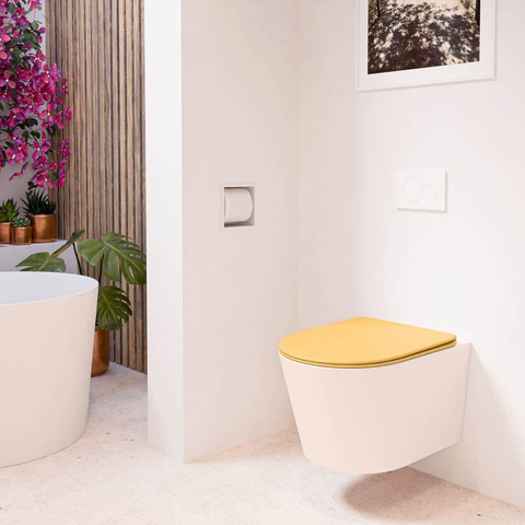 MONDIAZ LAVIE wandclosetpack - 36x53cm - diepspoel - rimless - Rosee (roze) - softclose - quick-release - toiletzitting - Ocher (geel)