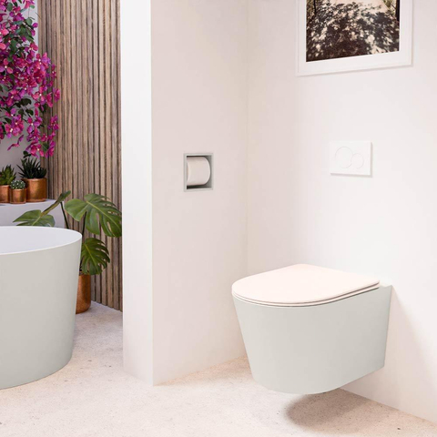 Ook de afdekkapjes, zijn perfect op kleur afgestemd met de toiletpot. Deze uniforme kleuring zorgt voor een esthetisch samenhangend geheel, ideaal voor moderne badkamerontwerpen.