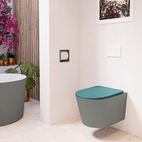 Ook de afdekkapjes, zijn perfect op kleur afgestemd met de toiletpot. Deze uniforme kleuring zorgt voor een esthetisch samenhangend geheel, ideaal voor moderne badkamerontwerpen.