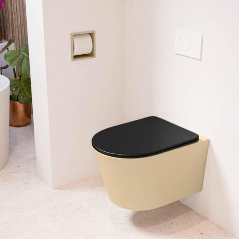 MONDIAZ LAVIE wandclosetpack - 36x53cm - diepspoel - rimless - Sand (beige) - softclose - quick-release - toiletzitting - Urban (zwart)