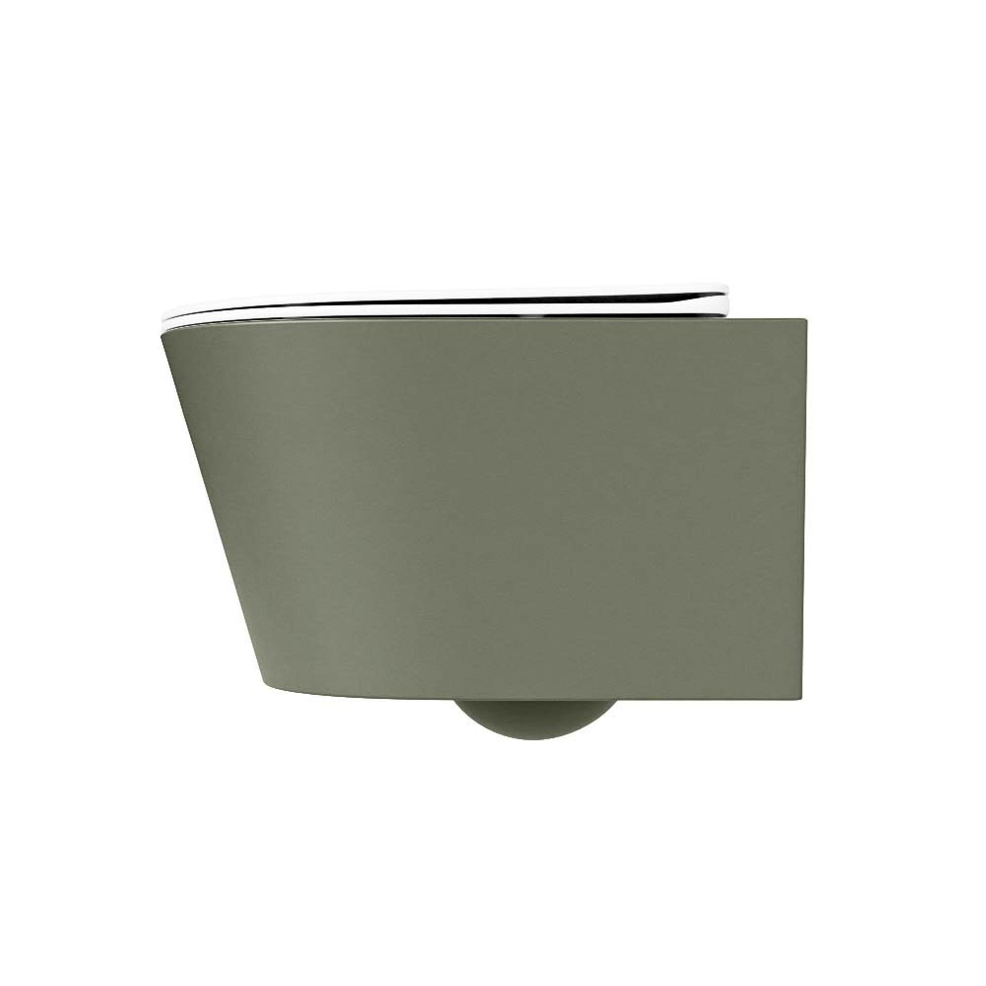 MONDIAZ LAVIE wandclosetpack - 36x53cm - diepspoel - rimless - Army (groen) - softclose - quick-release - toiletzitting - Talc (offwhite)