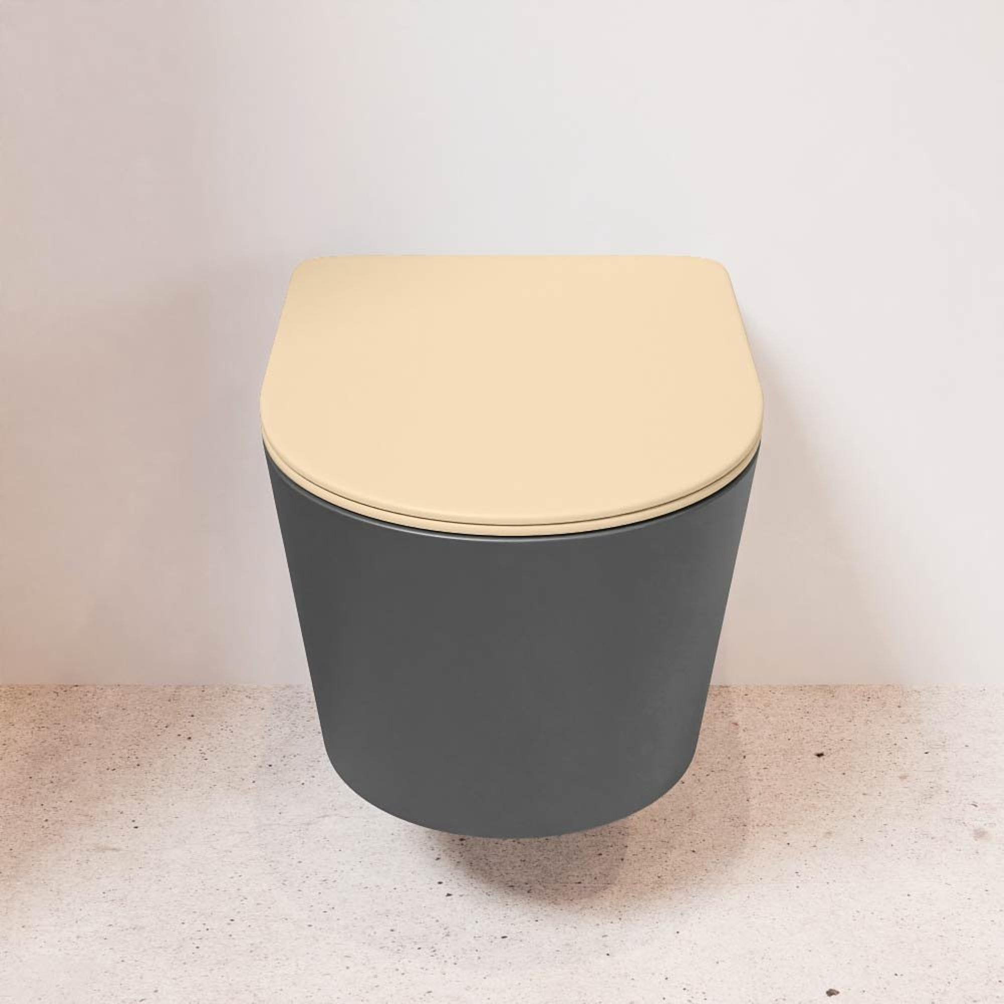 MONDIAZ LAVIE wandclosetpack - 36x53cm - diepspoel - rimless - Dark grey (grijs) - softclose - quick-release - toiletzitting - Sand (beige)