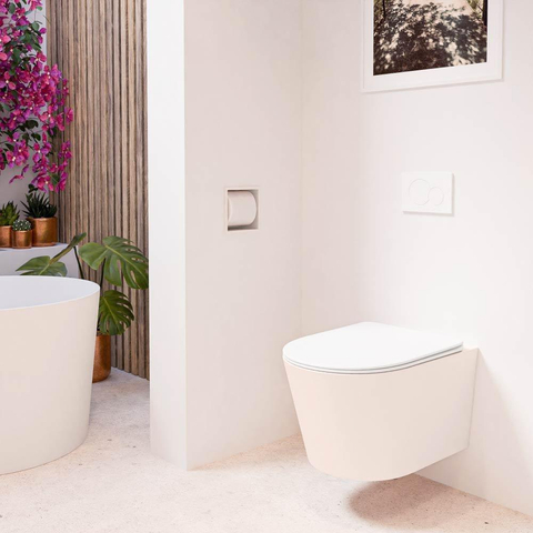 Ook de afdekkapjes, zijn perfect op kleur afgestemd met de toiletpot. Deze uniforme kleuring zorgt voor een esthetisch samenhangend geheel, ideaal voor moderne badkamerontwerpen.